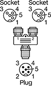 Note: M12 plugs have an extra pin on the face that is not used.