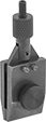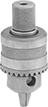 A chuck-style grip with a round opening gets a secure hold on pins. Attach to the shaft of your gauge.