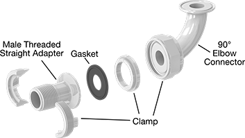 Note: To complete a connection, you’ll need two quick-clamp fittings, a clamp, and a gasket (all sold separately).