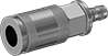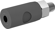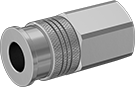 Sockets accommodate five common plug shapes: Industrial, ARO, Lincoln, Tru-Flate, and European. Use them with a plug of the same coupling size to frequently connect and disconnect your line. Sockets are push-to-connect style. To connect, push the plug into the socket until you hear a click. To disconnect, slide the sleeve on the socket forward until the plug ejects. Sockets have a shut-off valve that stops the flow when the coupling is separated, so air won’t leak from the line.
