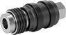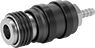 A complete coupling consists of a plug and a socket (both sold separately or in a set) that connect and disconnect quickly. Use them if you need frequent access to a line. All Tru-Flate plugs are compatible with any of the Tru-Flate sockets of the same coupling size, regardless of the pipe size or barbed hose ID. They are also known as automotive couplings.
