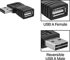 Adapters with reversible USB-A male plugs can be plugged in regardless of which side is up, unlike typical USB-A adapters.