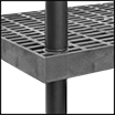 Pop the posts into the holes and these shelves are ready to load—no tools required. Made entirely of plastic, these units won't rust, dent, peel, or chip.