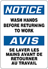Signs with text and symbols remind individuals that they need to sanitize their hands before entering a specific area. Some of these signs have a Notice header that meets OSHA safety color standards for indicating information that is important, but not hazard-related.