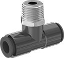 Made of flame-resistant material, these fittings are good for welding and other applications where sparks occur. Also known as instant fittings, they connect to tubing with a push, and an internal gripping ring and O-ring hold the tubing tight. To disconnect, push on the release ring and pull the tubing out of the fitting. They have good corrosion resistance.