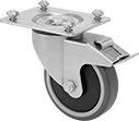 Casters with polyurethane wheels combine the abrasion resistance of plastic with the impact resistance of rubber.
