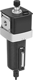 Stacked filter/regulator/lubricators require less horizontal space than inline FRLs. The filter and regulator are joined top-to-bottom with the lubricator on the side.