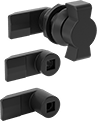 Install these latches on enclosure doors with smaller-than-standard diameter through holes. A gasket helps keep dust and low-pressure washdowns from entering through the latch. This helps you maintain your sealed enclosure's IP or NEMA rating. It’s harder to snag straps and other items on these wing-handle latches than on T- or L-handle latches. Also known as quarter-turn latches, all have an arm that rotates 90° to secure your enclosure.