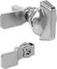 A gasket helps keep dust and water from washdowns or brief submersions from entering through the latch. This helps you maintain your sealed enclosure's IP or NEMA rating. It’s harder to snag straps and other items on these wing-handle latches than on T- or L-handle latches. They have a cam that rotates to secure your enclosure.
