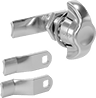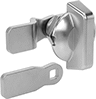 Also known as compression cam locks, these locks create a tighter hold than a traditional cam lock, making them useful for doors that have a seal. Turn the head a quarter turn to lock, then turn it another quarter turn to create compression and minimize rattling from vibration. All keep your sealed enclosure's contents safe from dust and water damage—they help maintain an enclosure's IP or NEMA rating for low-pressure washdowns. It’s harder to snag straps and other items on these wing-handle locks than on T- or L-handle locks. Choose them if you need several locks that open with the same key.