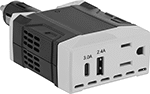 Power devices that have straight-blade connections from a vehicle outlet. These adapters also have USB ports to charge mobile devices. They automatically shut down when the vehicle’s battery gets low.