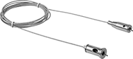 Add suspension hardware (sold separately) to hang lights from the ceiling. Suspension hardware for style A includes two wire rope slings with hooks and two wire rope clamps. No tools required—adjust the length and tighten clamps to secure. Suspension hardware for style B includes a mounting plate, an adjustable cable assembly, and a feed cord with three wire leads.