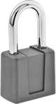 In an emergency, use a hammer to quickly break the shackle on these locks. They are often used for sprinkler shutoff valves and fire hose housings.